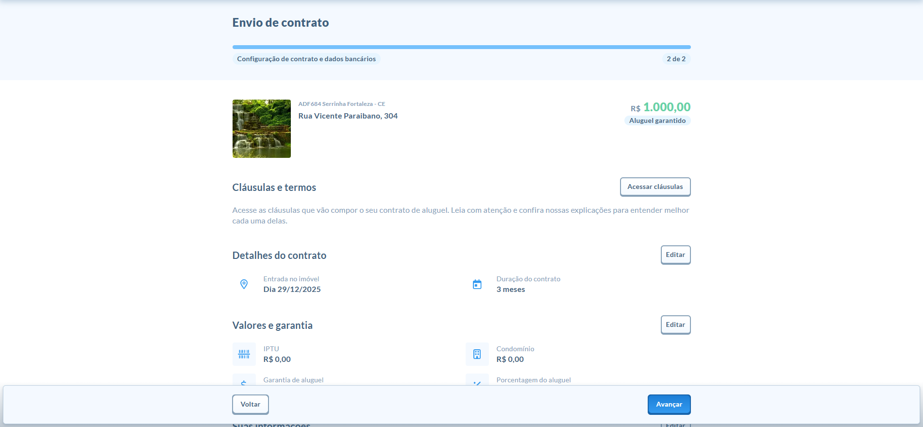 Voltar e Editar: Se precisar mudar algo no imóvel ou nos valores, você pode voltar e depois retornar ao Resumo.