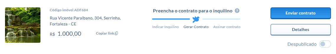Clicado na opção de enviar contrato, o que o usuário inquilino receberá?